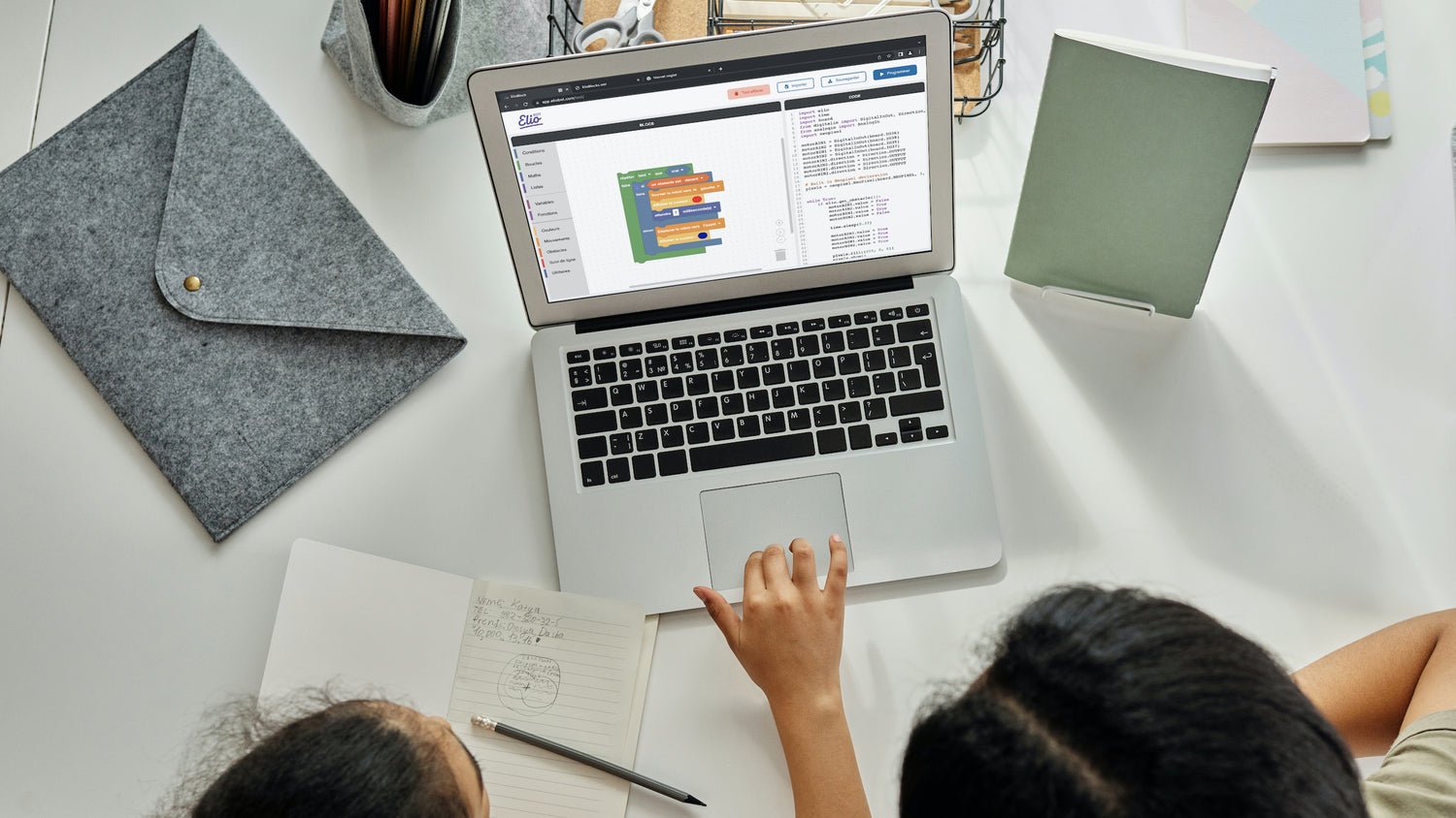 Notre application en libre accès permet aux élèves de créer librement leurs programmes sur ordinateur.